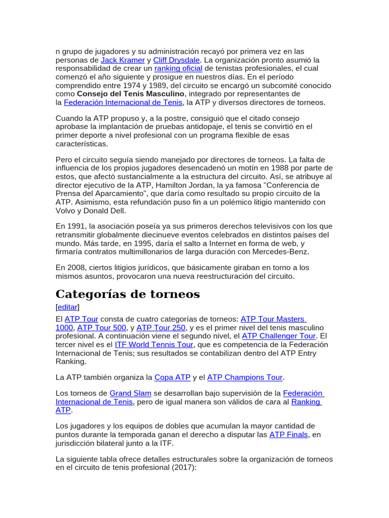 1000, ATP Tour 500, y ATP Tour 250, y es el primer nivel del tenis masculino