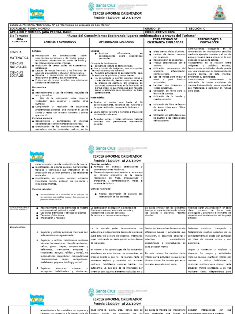 LOCALIDAD: PERITO MORENO GRADO: 1º SECCIÓN: C