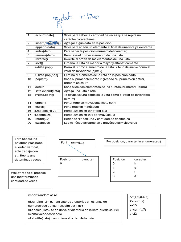 2 .insert(dato, pos) Agregar algún dato en la posición