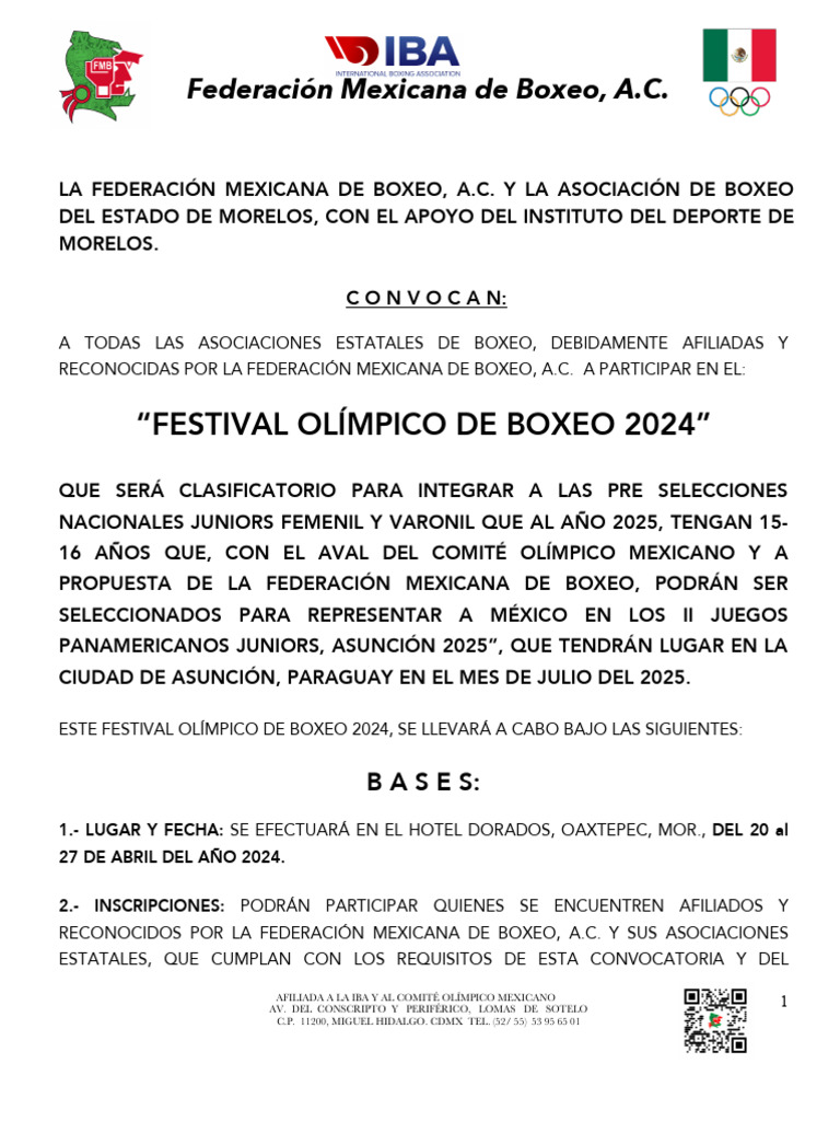 MEXICANA DE BOXEO Y QUEDAN ABIERTAS A PARTIR DE LA PUBLICACIÓN DE LA PRESENTE