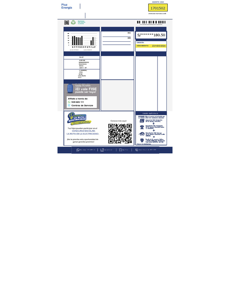 Alimentador FA-07 El total a pagar incluye: Recargo FOSE (Ley 27510) S/ 3.70, Reposic. y Mant. de Conex 1.70