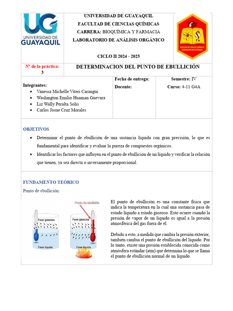 Nº de la práctica: DETERMINACION DEL PUNTO DE EBULLICIÓN