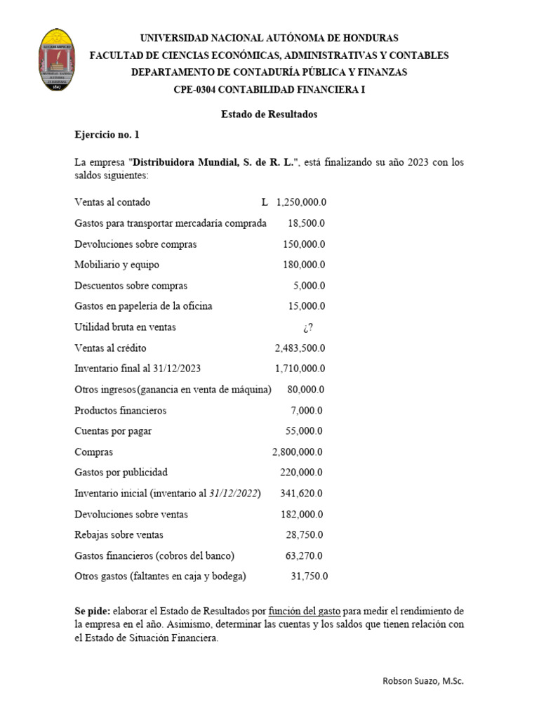 Se pide: elaborar el Estado de Resultados por función del gasto para medir el rendimiento de