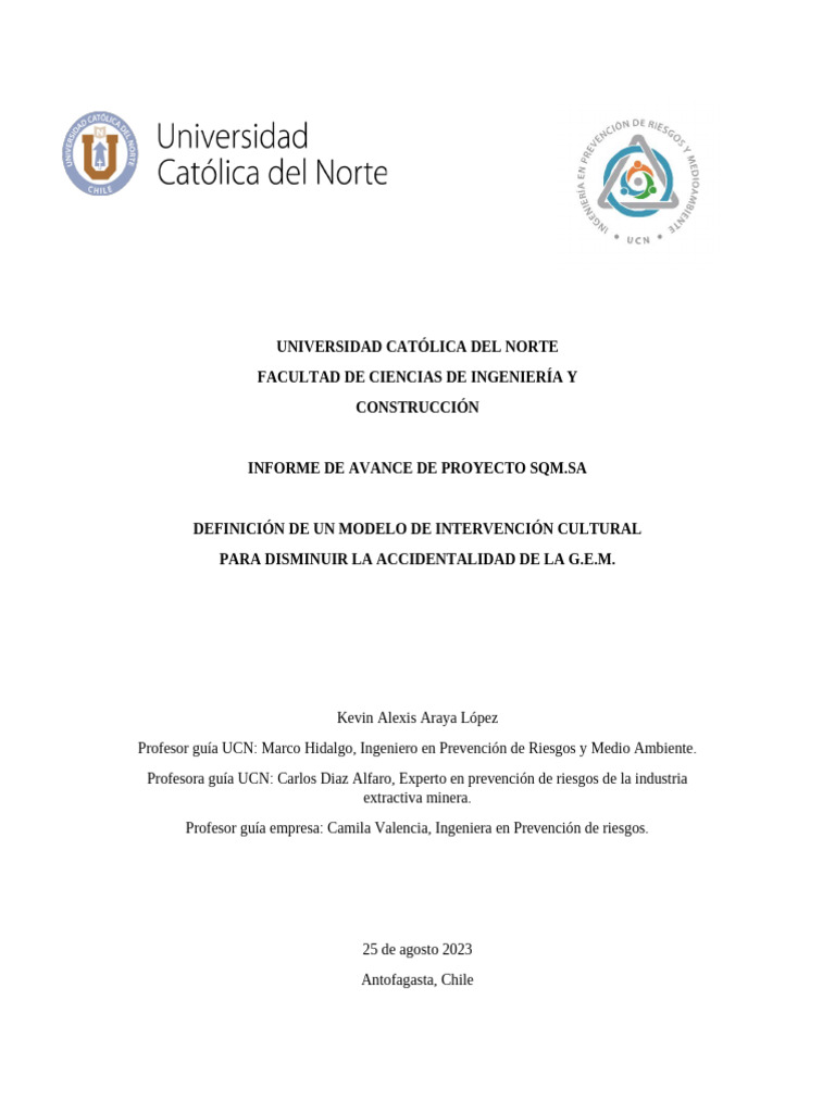 Profesor guía UCN: Marco Hidalgo, Ingeniero en Prevención de Riesgos y Medio Ambiente.
