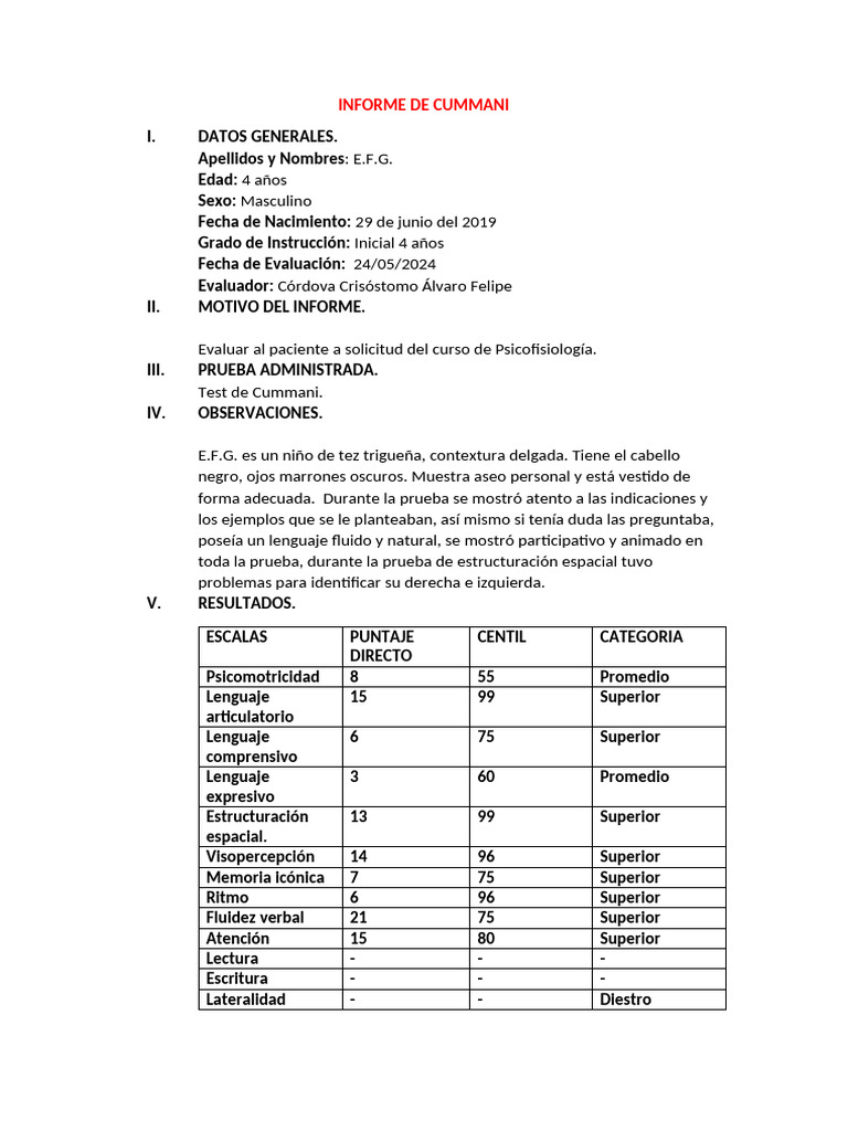 INFORME DE CUMMANI
