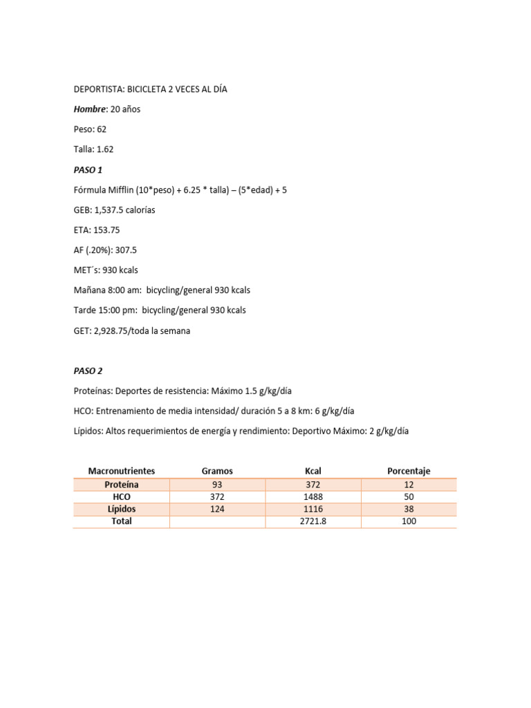 Mañana 8:00 am: bicycling/general 930 kcals
