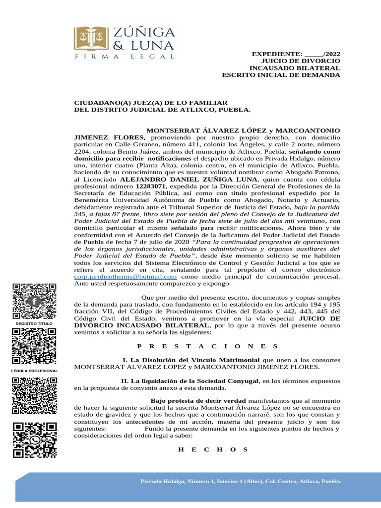 nos une a los suscritos Marcoantonio Jiménez Flores y Montserrat Álvarez López, por lo