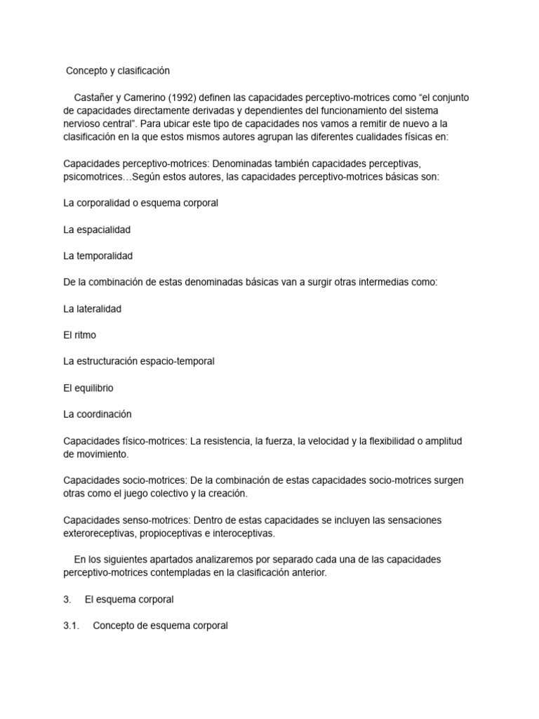 Castañer y Camerino (1992) definen las capacidades perceptivo-motrices como “el conjunto