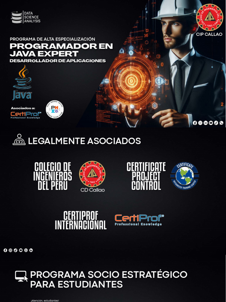 Java a nivel experto, lo que les abre puertas en diversas industrias, desde el desarrollo de aplicaciones móviles y sistemas empresariales hasta