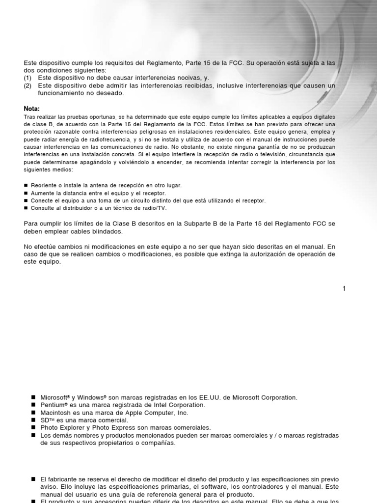 de clase B, de acuerdo con la Parte 15 del Reglamento de la FCC. Estos límites se han previsto para ofrecer una