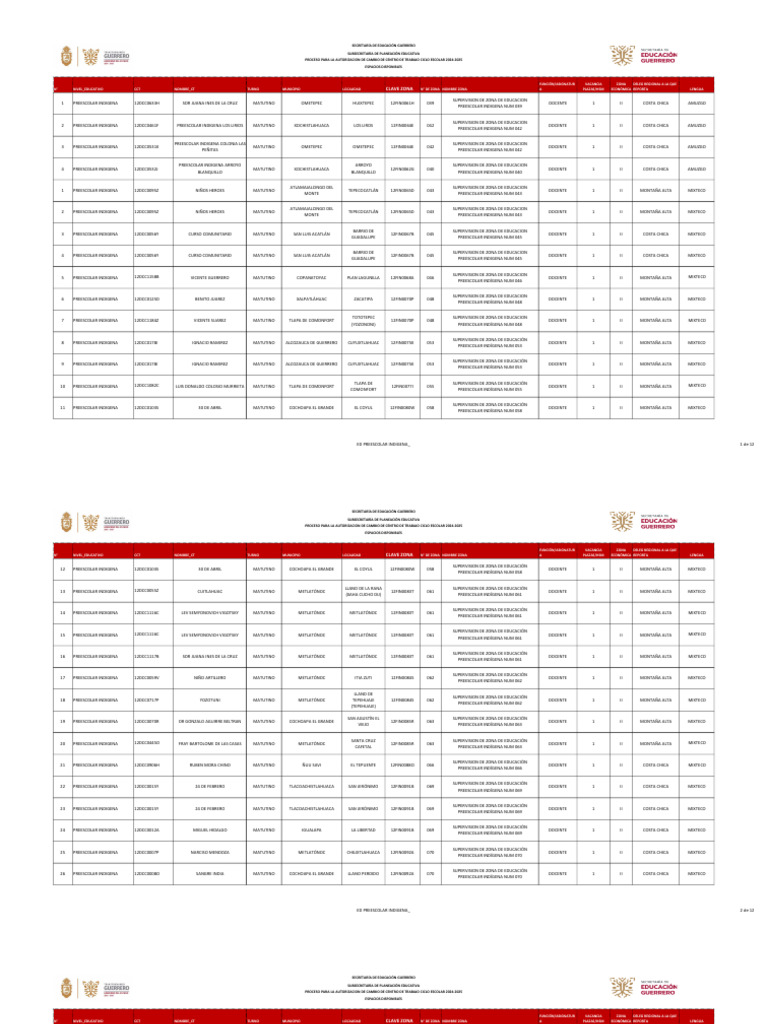 169 PREESCOLAR INDIGENA 12DCC1218Z MARIA MONTESSORI MATUTINO ATLIXTAC PEDRO HUITZAPULA 12FIN0111Z 089 DOCENTE 1 II MONTAÑA ALTA TLAPANECO