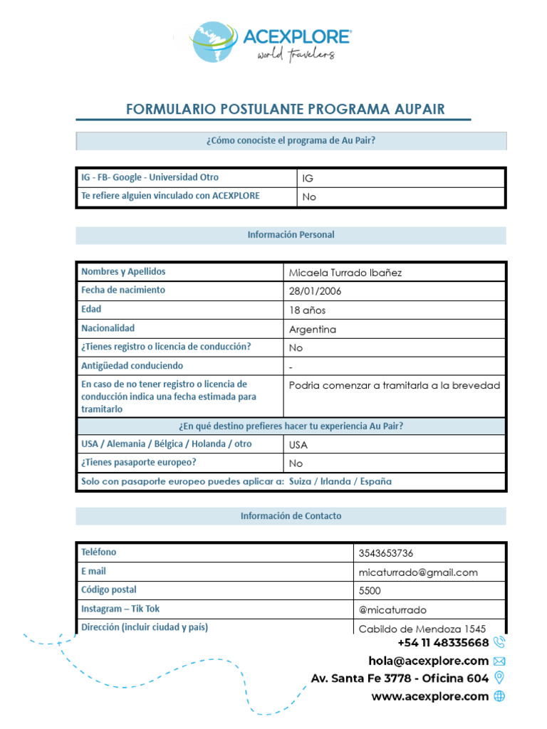 FORMULARIO POSTULANTE PROGRAMA AUPAIR