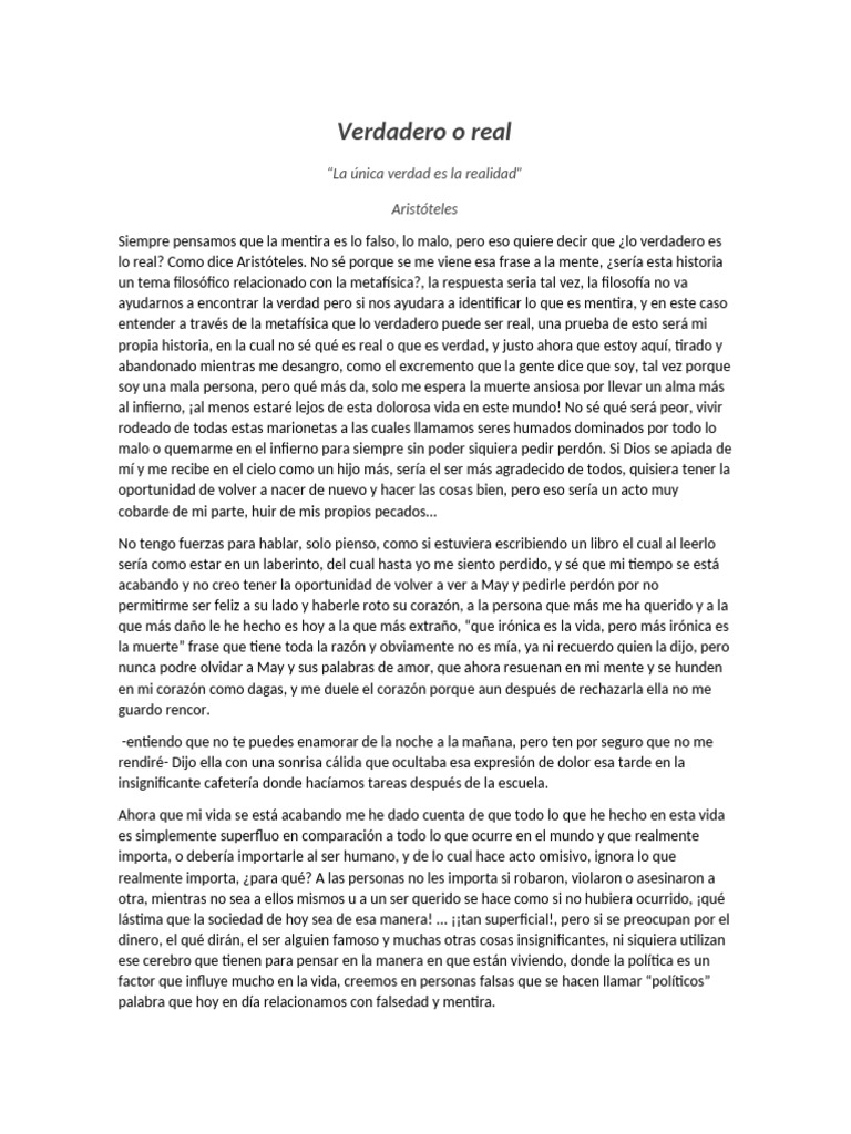 lo real? Como dice Aristóteles. No sé porque se me viene esa frase a la mente, ¿sería esta historia