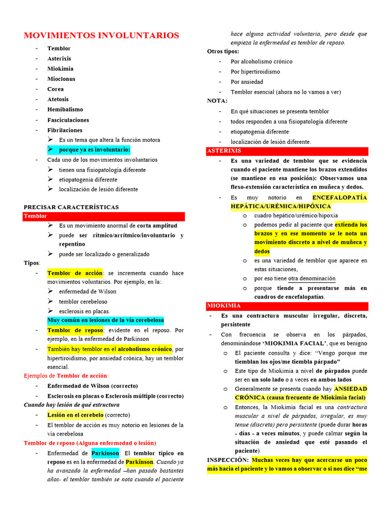 que hay miokimia facial ¿Cómo harías la Anamnesis? - Ya, esa - A diferencia de la mioclonía estos movimientos son