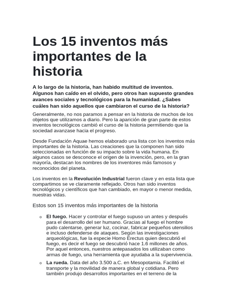 Desde Fundación Aquae hemos elaborado una lista con los inventos más
