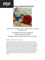 vestiduras diaconales, se acerca al Obispo y se arrodilla ante él. El