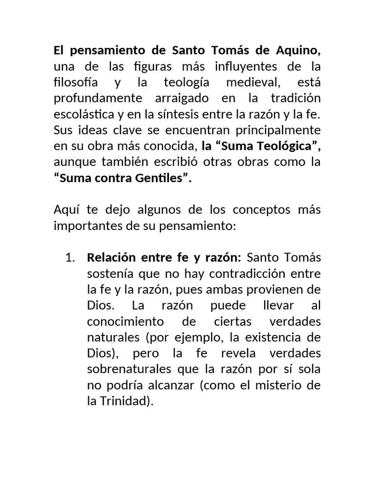 El pensamiento de Santo Tomás de Aquino,