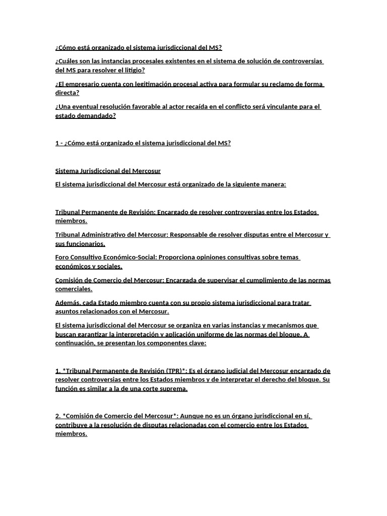 1. *Tribunal Permanente de Revisión (TPR)*: Es el órgano judicial del Mercosur encargado de