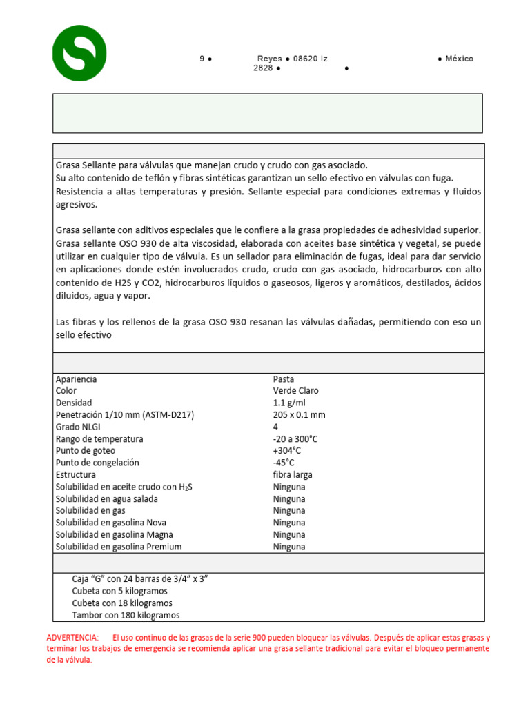 I. GRASA SELLANTE PARA EMERGENCIAS OSO 930