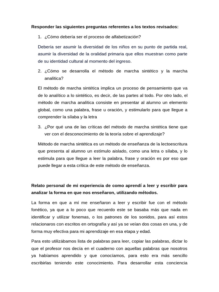 1. ¿Cómo debería ser el proceso de alfabetización?