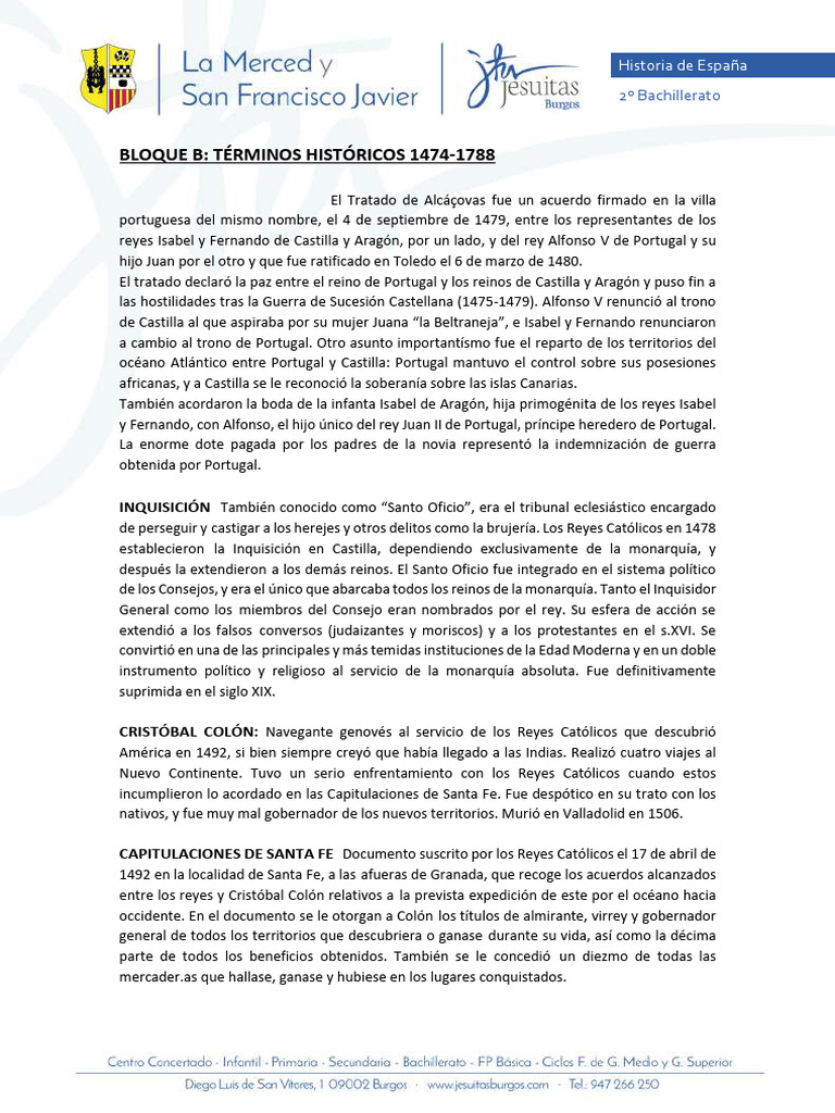 BLOQUE B: TÉRMINOS HISTÓRICOS 1474-1788