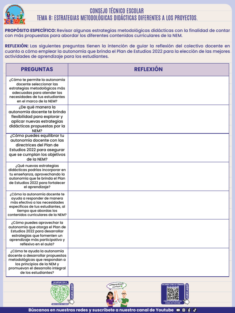metodológicas que respondan a académicos como los socioemocionales, en línea con los principios de la NEM.