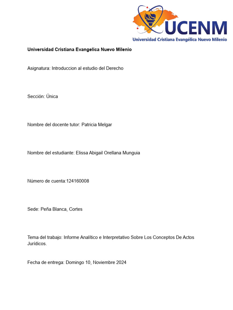 Tema del trabajo: Informe Analítico e Interpretativo Sobre Los Conceptos De Actos