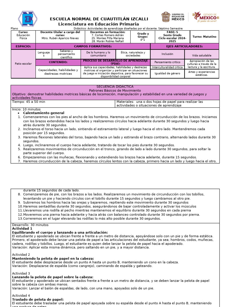 Objetivo: demostrar habilidades motrices básicas de locomoción, manipulación y estabilidad en una variedad de juegos y