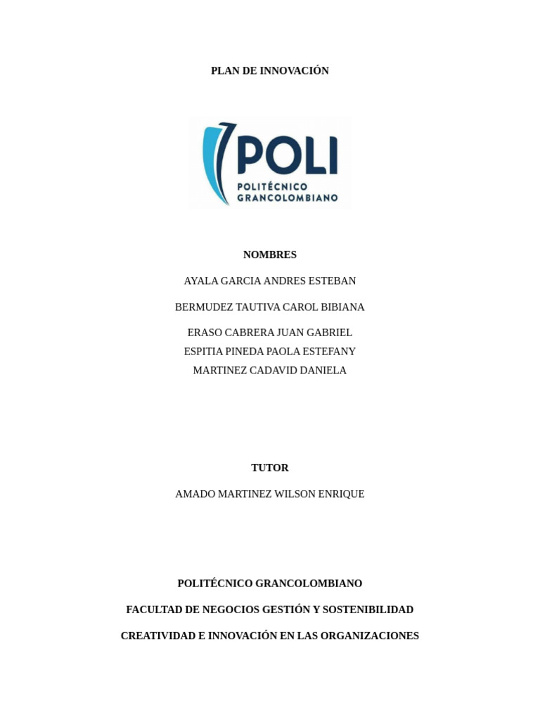 organización dicha solución. En su empresa deben conformar un grupo creativo por