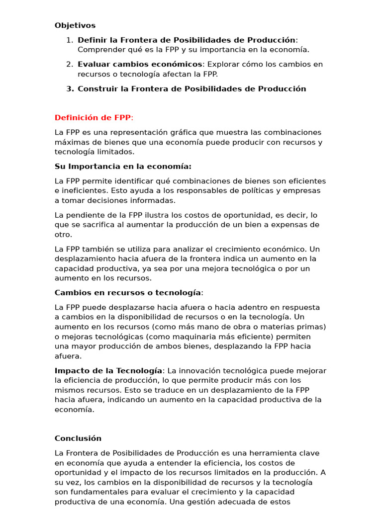 1. Definir la Frontera de Posibilidades de Producción (FPP)