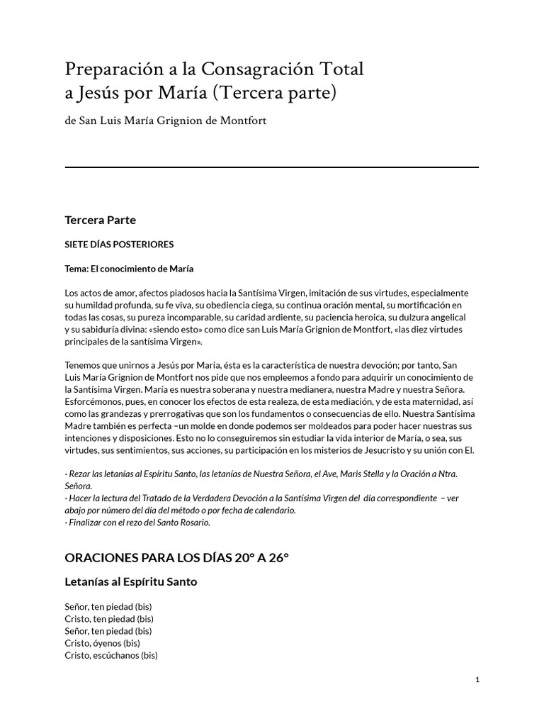 · Hacer la lectura del Tratado de la Verdadera Devoción a la Santísima Virgen del día correspondiente – ver