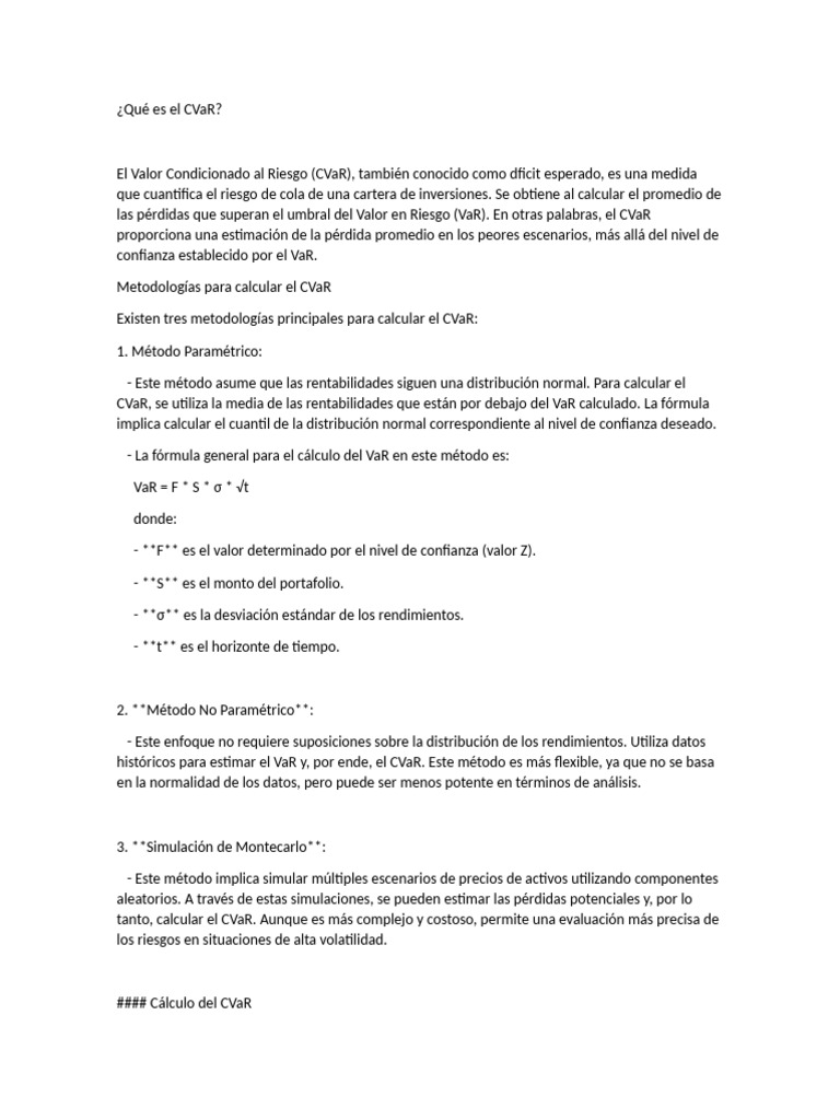 tanto, calcular el CVaR. Aunque es más complejo y costoso, permite una evaluación más precisa de