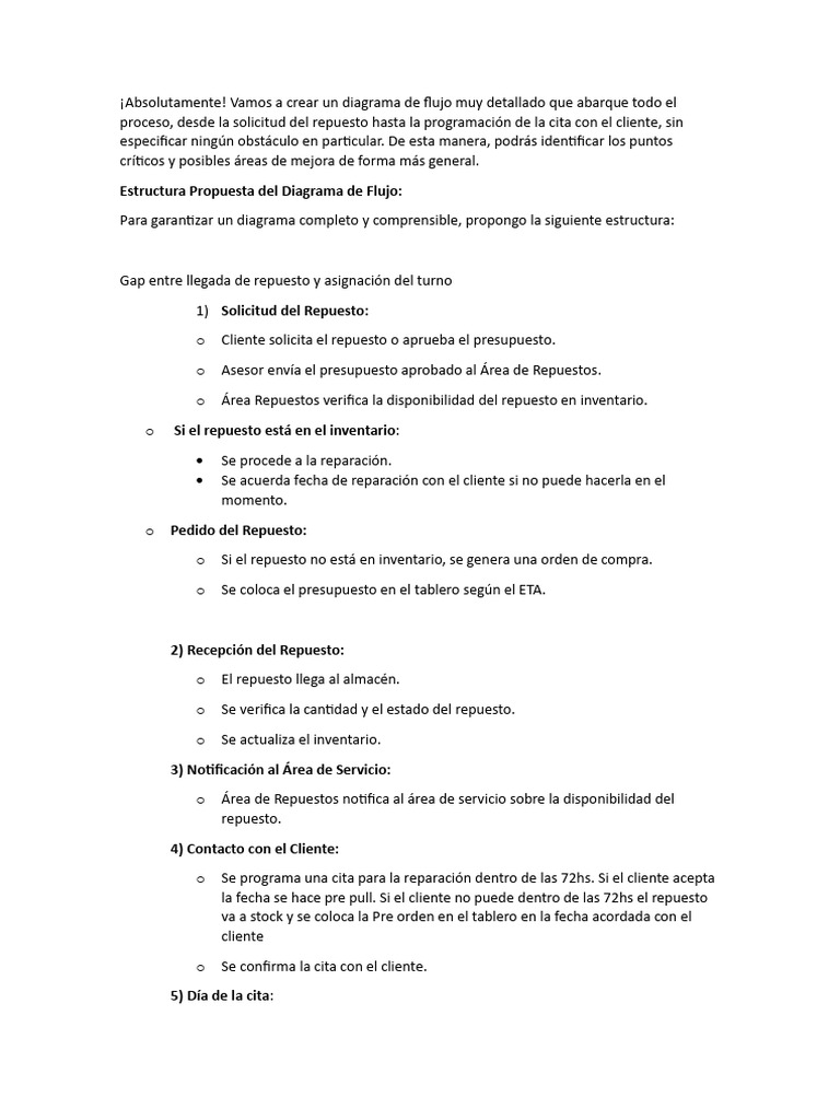 proceso, desde la solicitud del repuesto hasta la programación de la cita con el cliente, sin