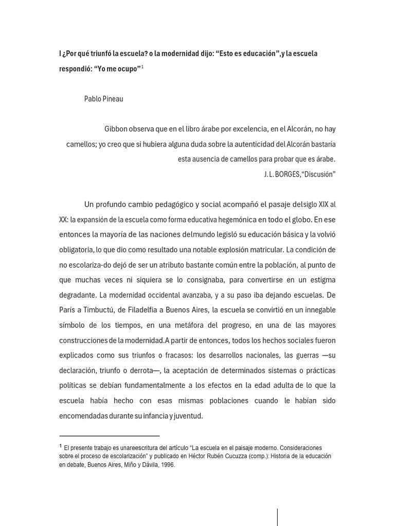 sobre el proceso de escolarización” y publicado en Héctor Rubén Cucuzza (comp.): Historia de la educación