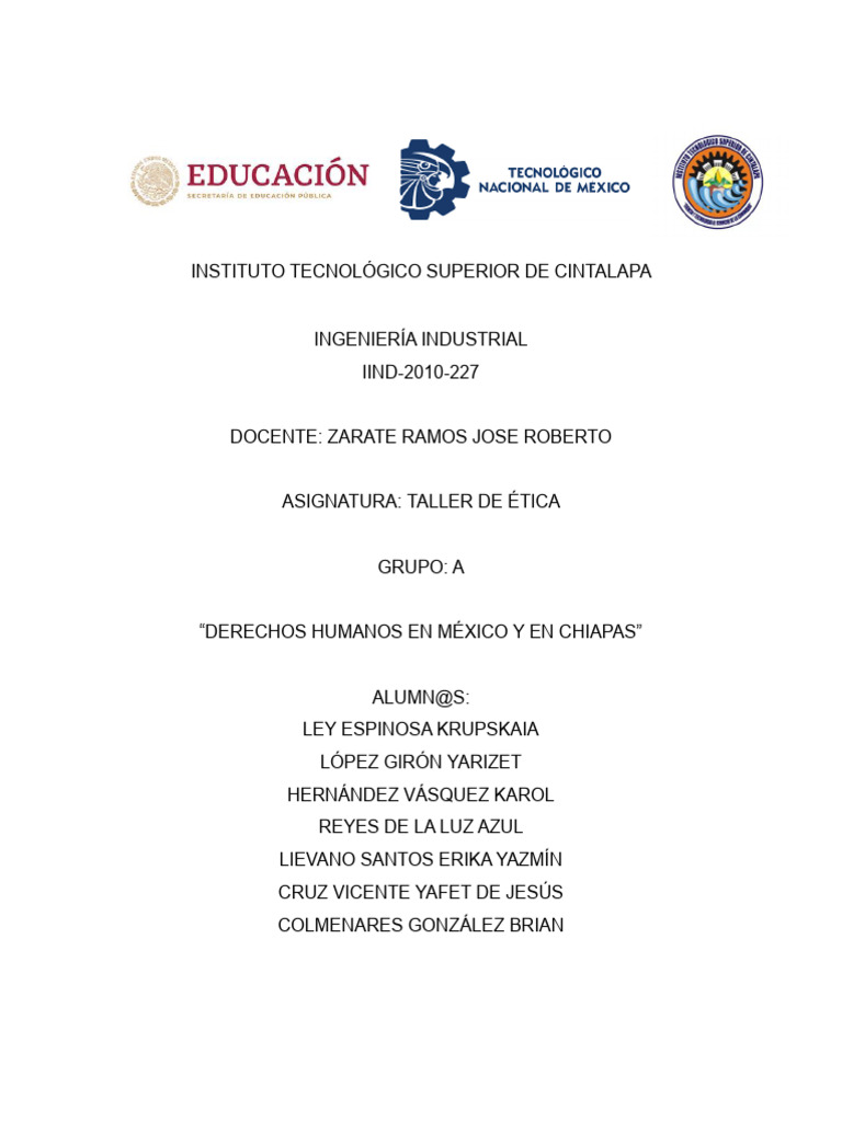 “DERECHOS HUMANOS EN MÉXICO Y EN CHIAPAS”