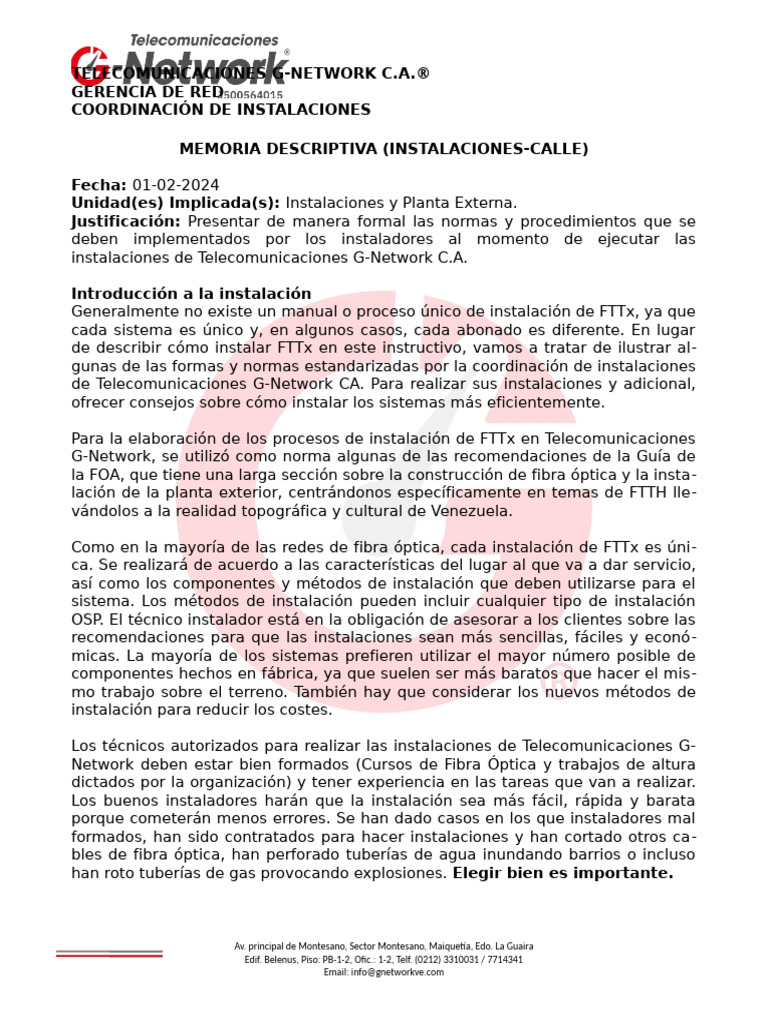 de Telecomunicaciones G-Network CA. Para realizar sus instalaciones y adicional,
