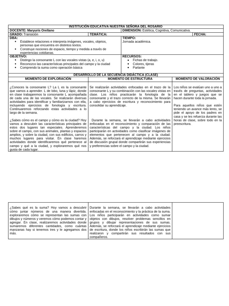 en clase trabajaremos la consonante L acompañada clase. Los niños practicarán la fonología de la en el tablero y juegos que se