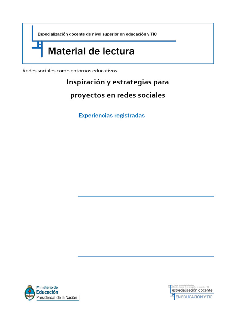 sociales como entonos educativos, Especialización docente de nivel superior en educación y TIC, Buenos Aires, Ministerio
