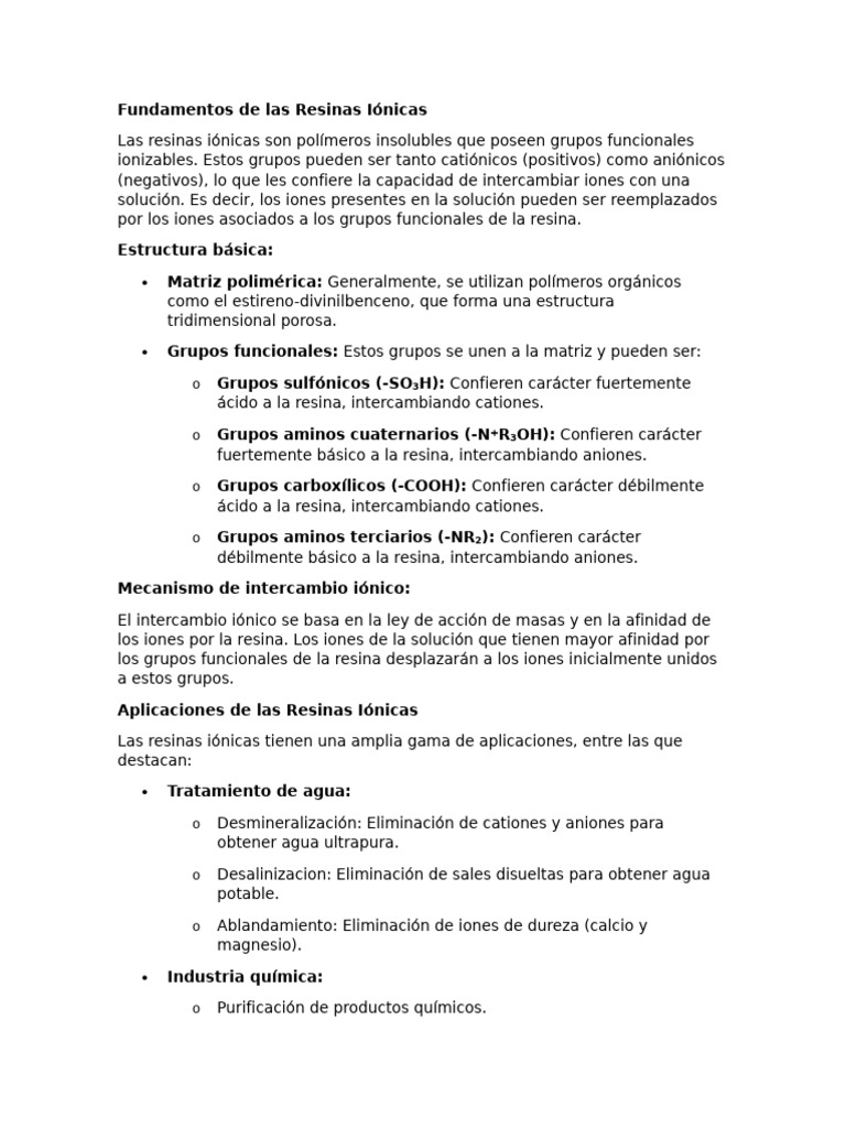 Fundamentos de las Resinas Iónicas