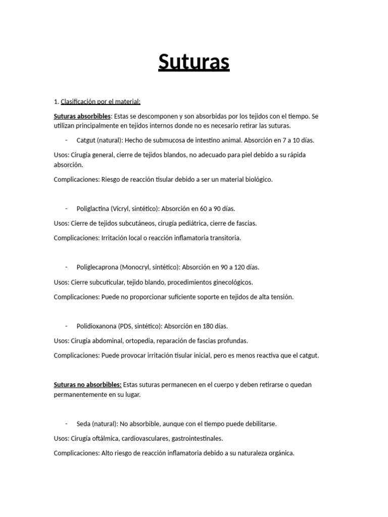 riesgo de causar una reacción inflamatoria tisular debido a su origen biológico. Las suturas