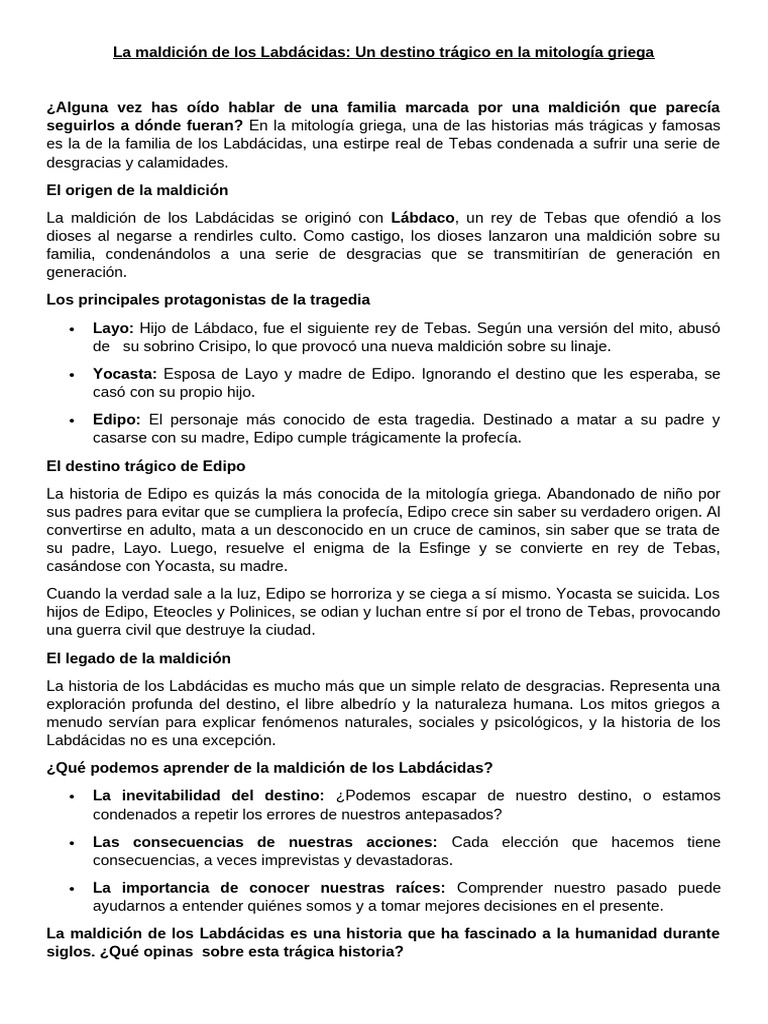 1- ¿Quién fue Lábdaco y qué papel jugó en la maldición de su familia?