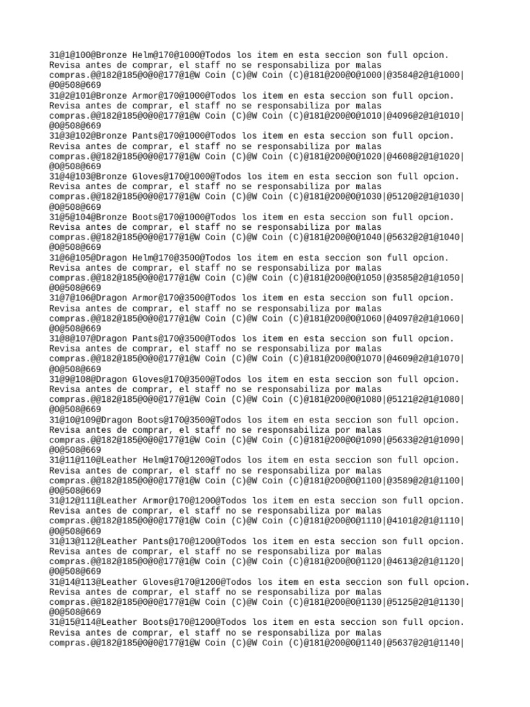 31@40@139@Great Dragon Boots@170@6000@Todos los item en esta seccion son full