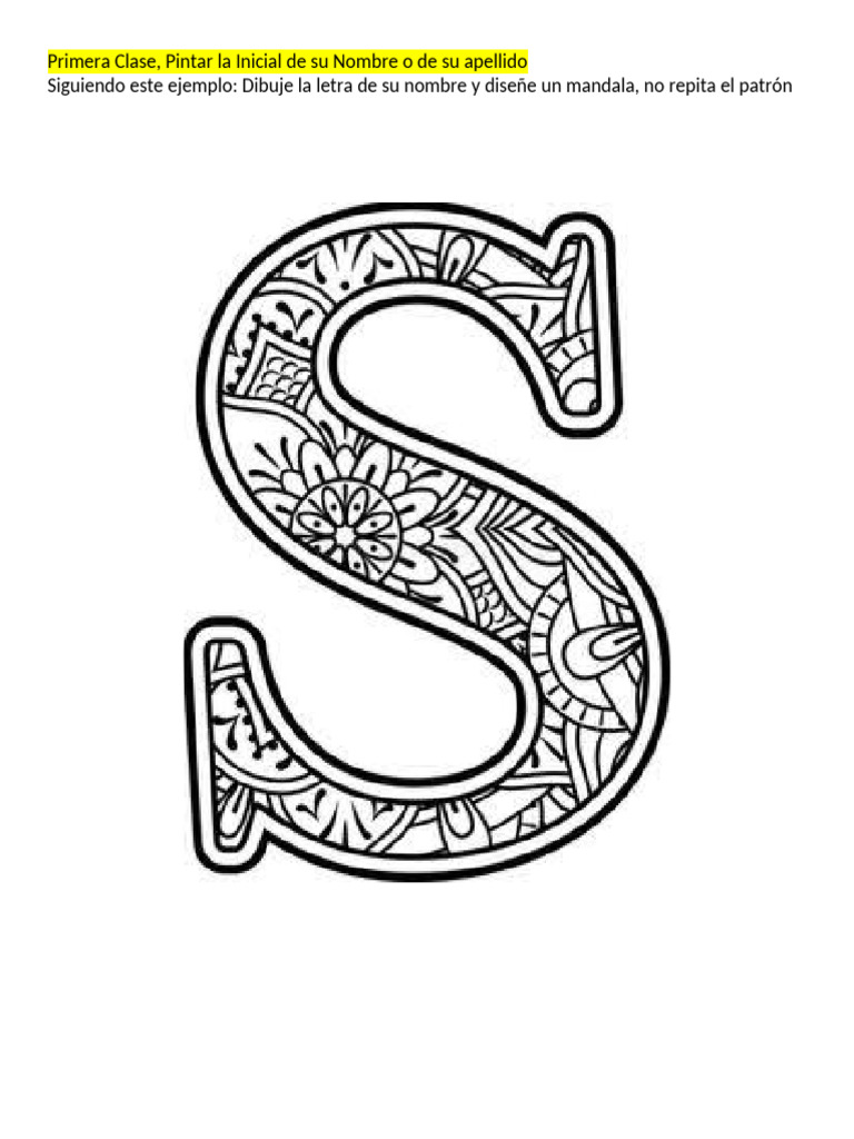 Siguiendo este ejemplo: Dibuje la letra de su nombre y diseñe un mandala, no repita el patrón