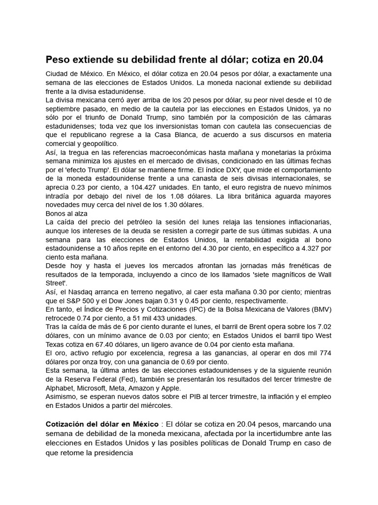 semana de las elecciones de Estados Unidos. La moneda nacional extiende su debilidad