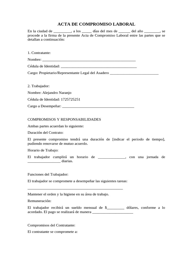 ACTA DE COMPROMISO LABORAL