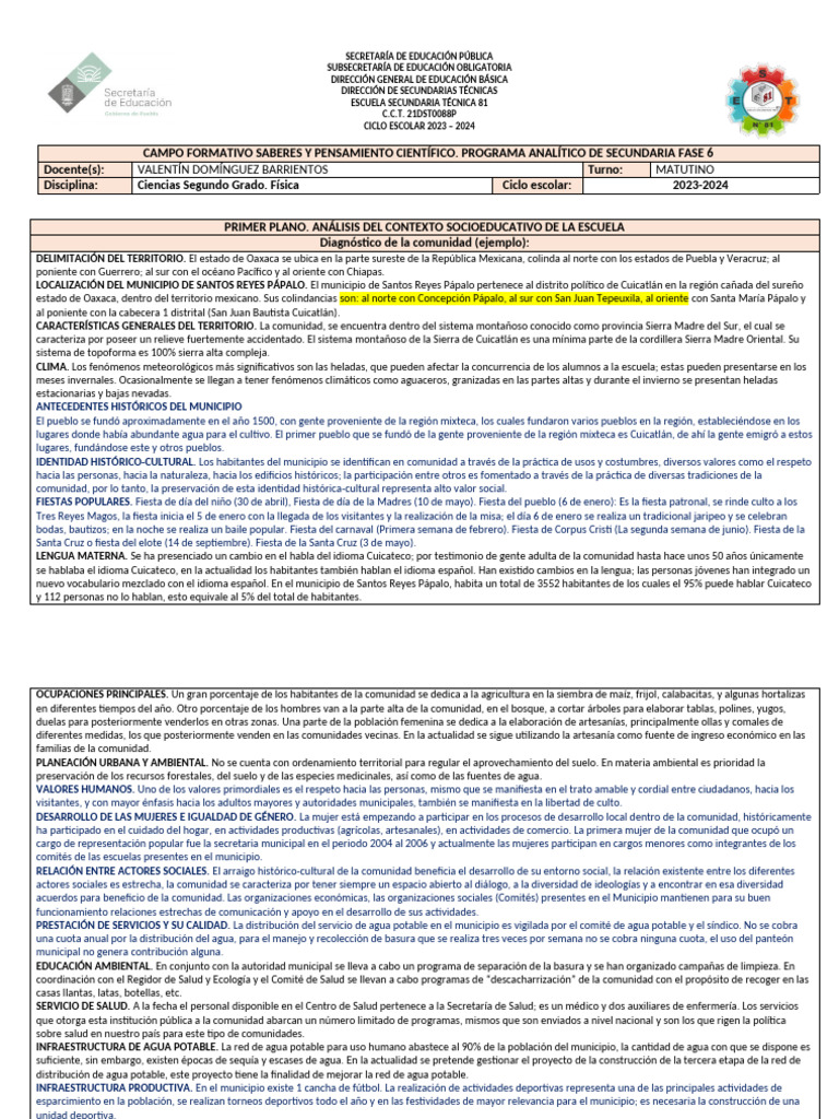 CAMPO FORMATIVO SABERES Y PENSAMIENTO CIENTÍFICO. PROGRAMA ANALÍTICO DE SECUNDARIA FASE 6