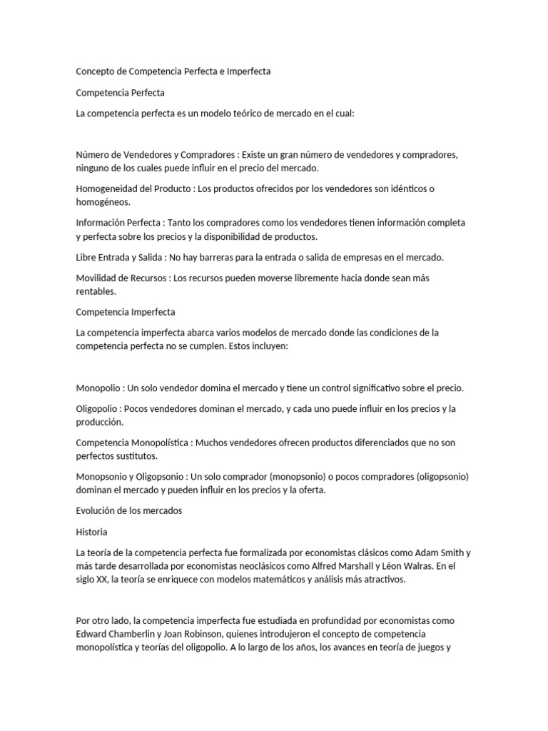 Concepto de Competencia Perfecta e Imperfecta