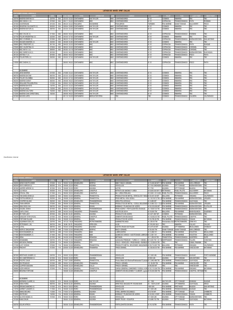 291700 POLAR PERU (V) 292300 05D 230.00 / 37.00 CONTAINERO IAN TAYLOR MAE CONTENEDORES D/ E/ COSMOS INMARSA TBC TBC 1