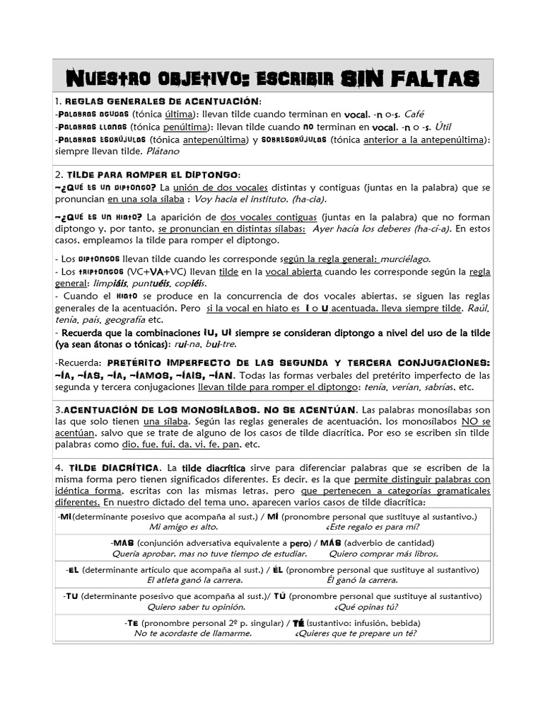 diferentes. En nuestro dictado del tema uno, aparecen varios casos de tilde diacrítica: