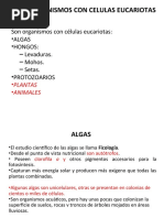 Son organismos formados por células eucariotas (con núcleo) y se dividen en unicelulares –suelen